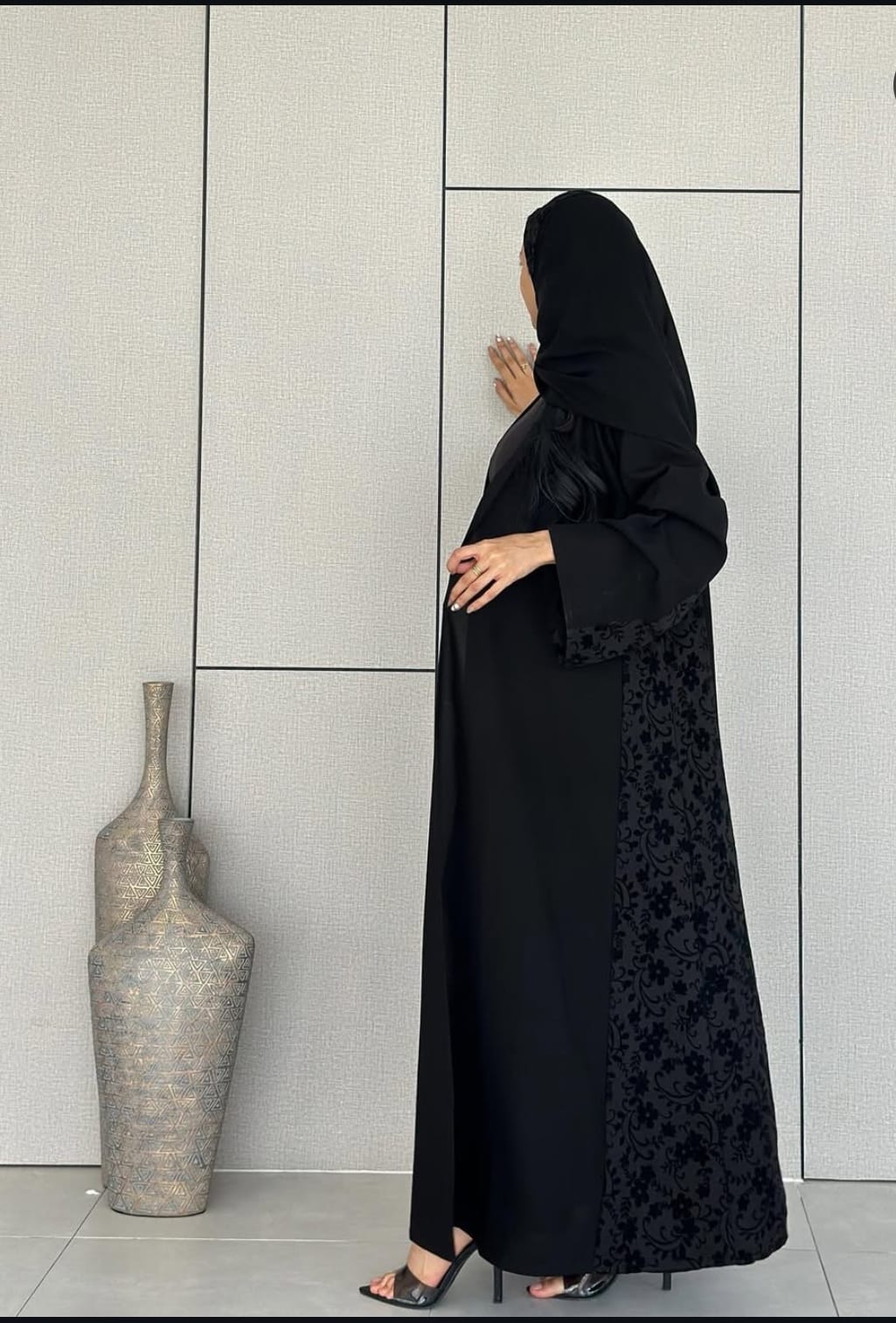 Material: Premium black fabric with velvet accents Design: Velvet floral patterns on sleeves and back panel Occasion: Ideal for evening wear, events, and elegant outings Care Instructions: Dry clean or hand wash for best results