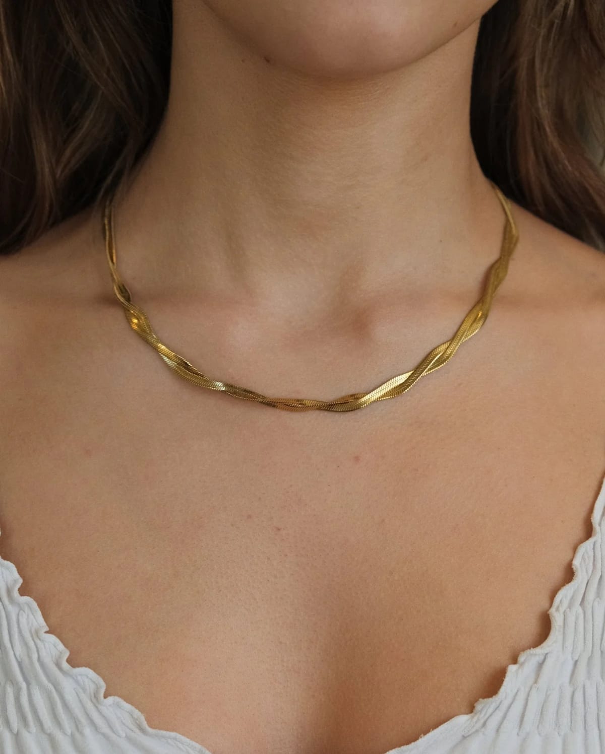 Material: Premium gold-tone metal with a smooth, polished finish Design: Twisted chain for a modern, elegant look Length: Ideal for layering or as a standalone piece Occasion: Perfect for casual wear, office attire, or formal events
